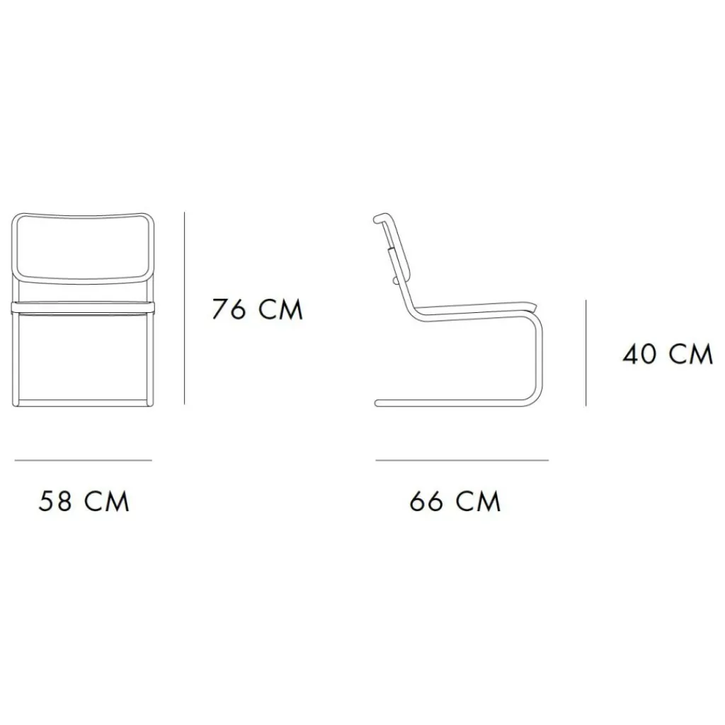 Der S 32 VL Freischwinger Lounge Stuhl Gestell verchromt kann mit 110kg belastet werden. Das Modell hat eine Sitzhöhe von 40cm. Die Höhe beträgt 76cm und die Tiefe 66cm. Der Stuhl hat eine Breite von 58cm. Sein Gewicht beträgt 7,2kg.
