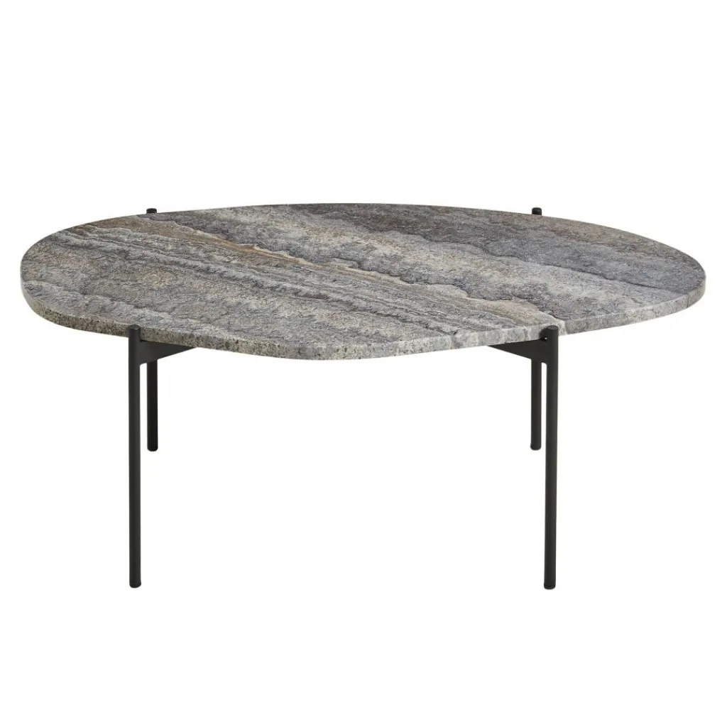 Was beim La Terra Beistelltisch L ins Auge sticht, ist die außergewöhnliche Platte aus Travertin. Der Stein wirkt schwer und robust und hat gleichzeitig eine von der Natur gezeichnete Oberfläche. Auch die Form der Tischplatte ist natürlich und unregelmäßig. Im Kontrast dazu steht das Metallgestell, das mit seinen geradlinigen Formen Stabilität ausdrückt, jedoch aufgrund der schlanken, runden Beine auch einen leichten Charakter ausstrahlt. Dies macht den La Terra Beistelltisch L so vielseitig. Denn er fügt sich als einzelner Couchtisch oder im Ensemble mit weiteren La-Terra-Tischchen nicht nur perfekt in die Sofalandschaft daheim ein, sondern passt auch in den modernen Wartebereich einer Praxis oder die Lobby im Hotel.