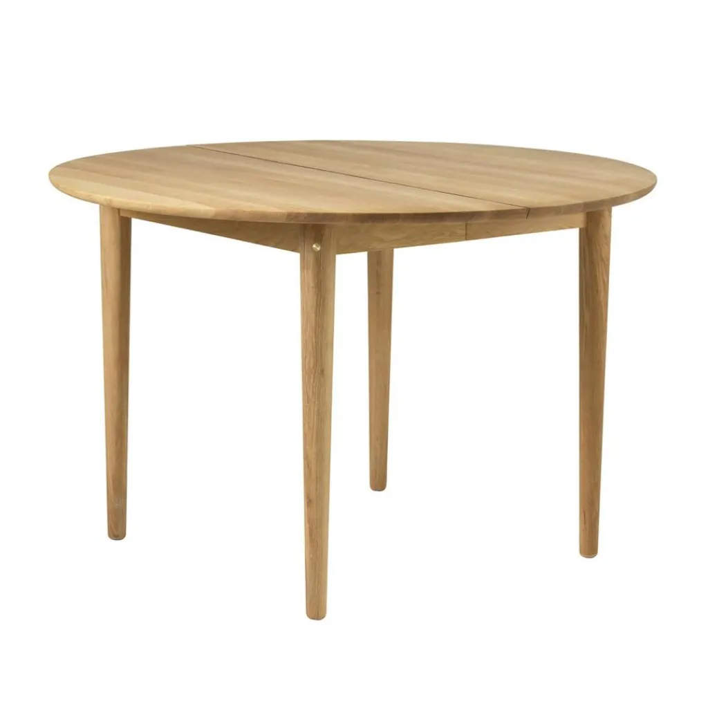 Der C62E Bjørk Esstisch wurde von Unit10 für die Marke FDB Møbler entworfen. Die Designagentur aus Kopenhagen kreierte den Tisch aus Massivholz in typisch puristisch-skandinavischer Formsprache im Jahr 2017.