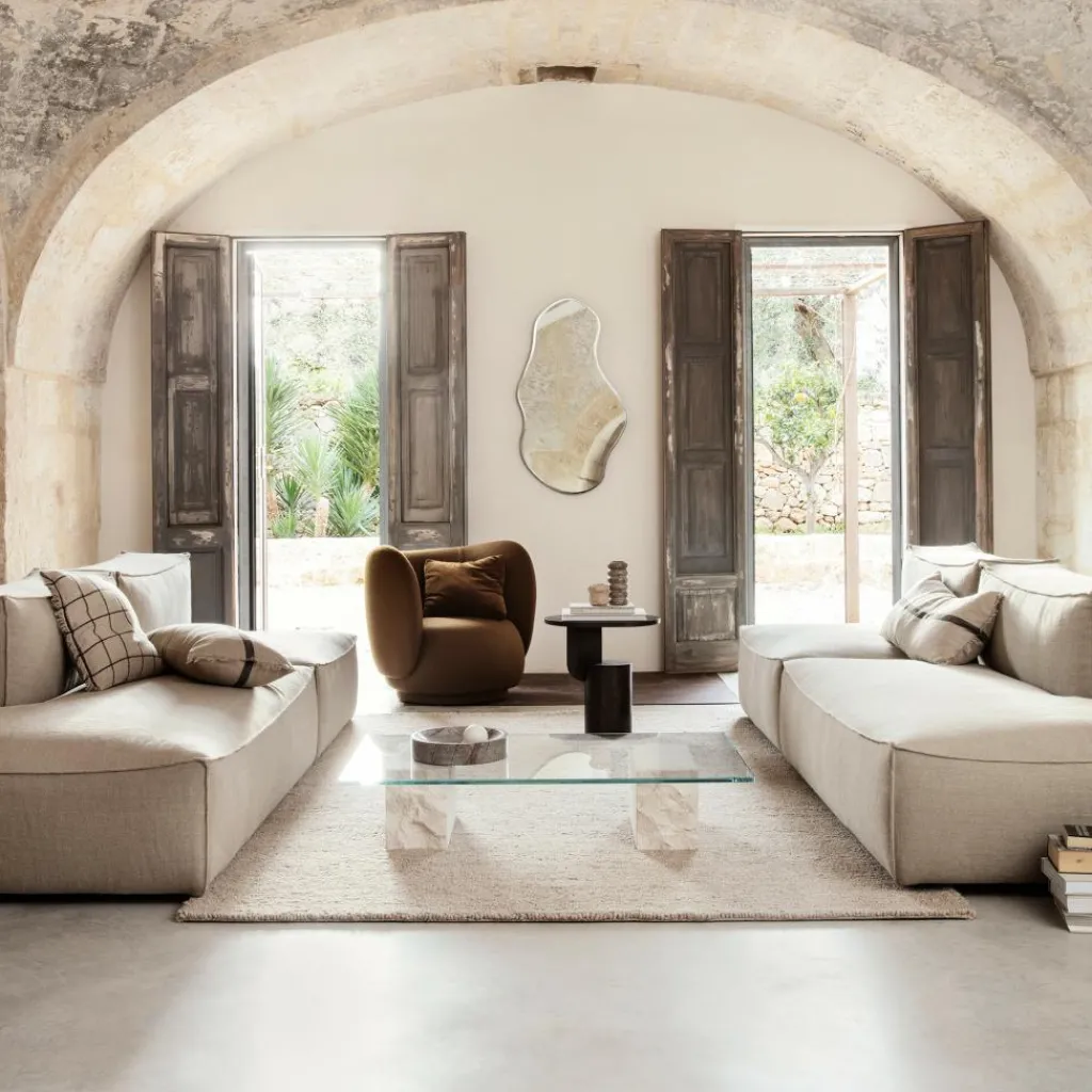 Der Mineral Couchtisch 120x70cm wurde für die Marke Ferm Living entworfen. Der Name bezieht sich auf die beiden massiven Blöcke, die als Tischbeine fungieren. Sie bestehen aus edlem Bianco-Curia-Marmor, der aus einem Steinbruch in Brescia in der italienischen Lombardei stammt.