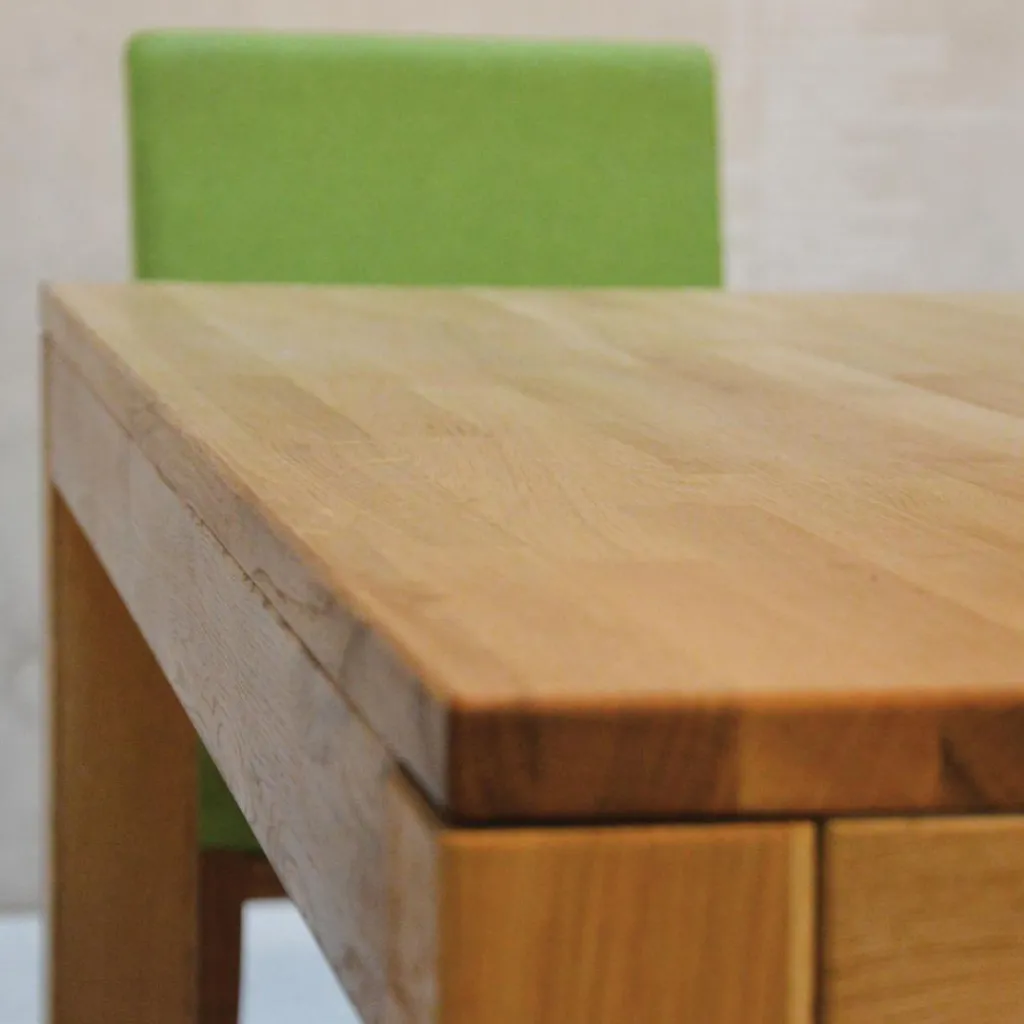Zum Essen oder Reden, der Cana Esstisch aus massivem Holz wird in Küche oder Esszimmer zu einem beliebten Treffpunkt! Gefertigt wird der Massivholz-Tisch von Jan Kurtz aus geölter Eiche. Besonderes Merkmal sind die 8x8cm starken, stabverleimten Tischbeine, die das solide Design gekonnt unterstreichen.