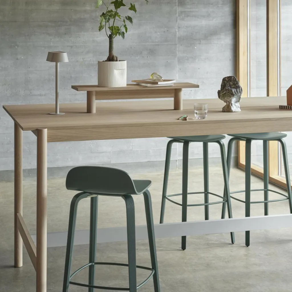 Der Linear System Stehtisch H 105cm wurde von Thomas Bentzen für die Marke Muuto entworfen. Funktionalität und eine natürliche Ästhetik vereinen sich in dem hohen Modell, das ein Gefühl von Zuhause in den Arbeitsalltag bringt.