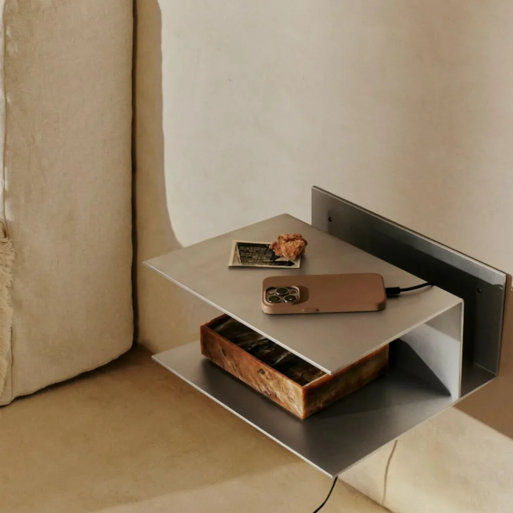 Reduktion trifft Funktion: Der Lager Nachttisch von Ferm Living ist ein Statement für alle, die klare Linien und kompromisslose Ästhetik schätzen. Gefertigt aus fein gearbeitetem Aluminium oder schlichtem pulverbeschichtetem Eisen, überzeugt er durch seine grafische Präsenz und den industriell inspirierten Charakter – eine moderne Interpretation des klassischen Nachttischs.