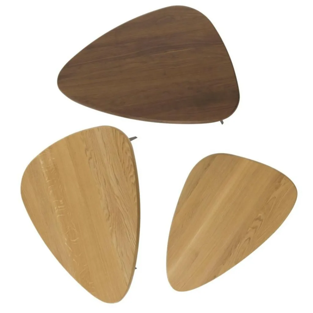 Der Mexique Konsolentisch begeistert mit seiner besonderen Designgestaltung, die die Triangelform der Tischplatte mit den grazilen Tischbeinen auf harmonische Weise verbindet. Die extravagante Formensprache des Tisches wird durch die exquisite Materialauswahl zusätzlich unterstrichen. Je nach Modell bestehen die Tischplatten aus amerikanischem Nussbaumholz oder Eiche Natur. Das filigran wirkende Gestell wurde aus Metall angefertigt.