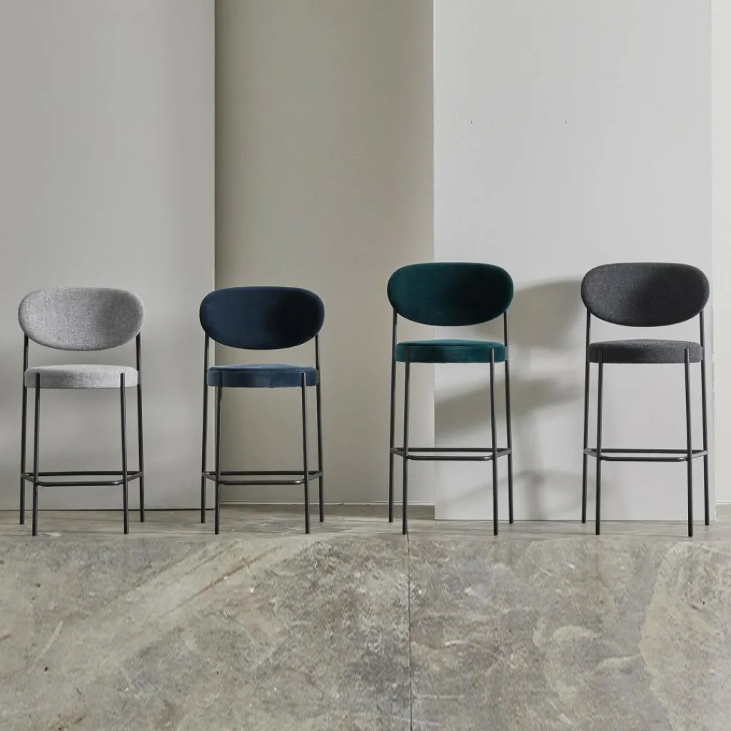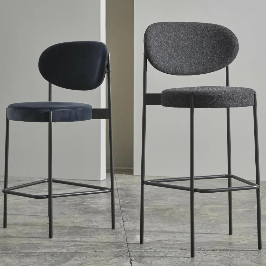 Bei dem Series 430 Panton Barhocker hat der Designer die organischen Strukturen seines inzwischen klassischen Panton-Stuhls auf eine höhere Ebene transportiert. Auch den Sitzkomfort, der dank der geformten Rückenlehne besonders hoch ist, hat er von dem niedrigeren Modell auf den langbeinigen Barhocker übertragen. Kombiniert mit dem Gestell aus Edelstahl, bei dem er auf eine schmale Silhouette setzt, ist auf diese Weise ein Barhocker entstanden, der leicht und beweglich wirkt. Damit ist er bestens auch für kleinere Räume geeignet.