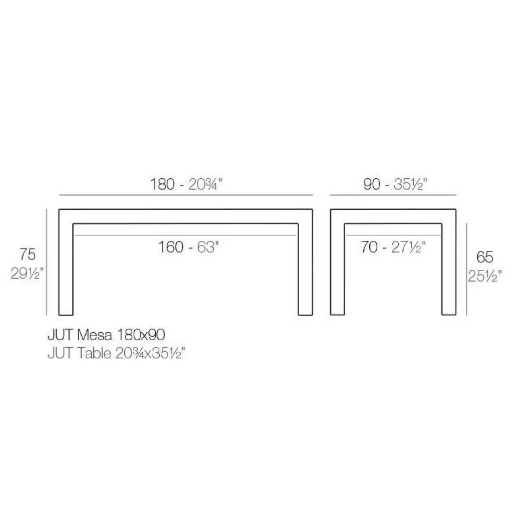Der Jut Gartentisch 90x180x75cm wurde von Karim Rashid für die Marke Vondom entworfen. Er ist eine formschöne Ergänzung der Jut-Gartenkollektion, die mit ihrem geradlinigen, minimalistischen Design beeindruckt.